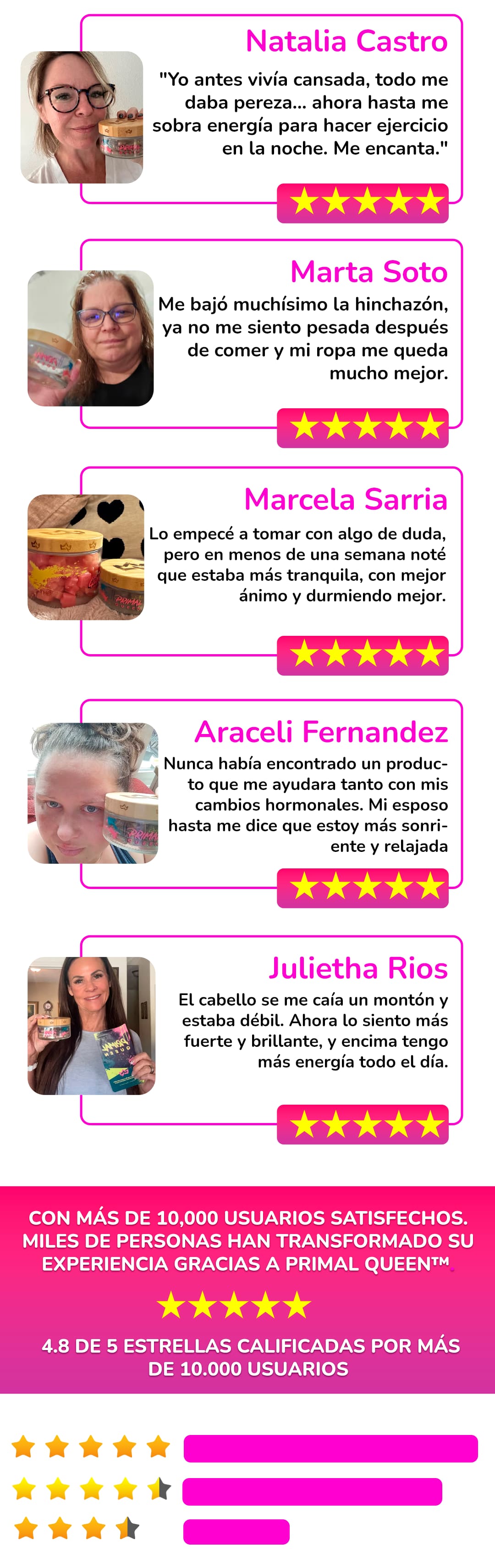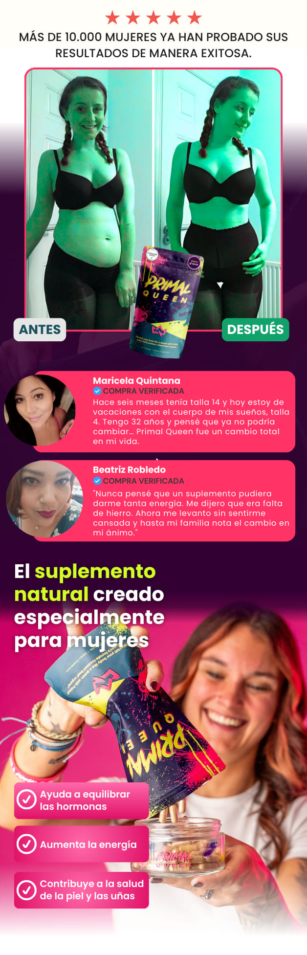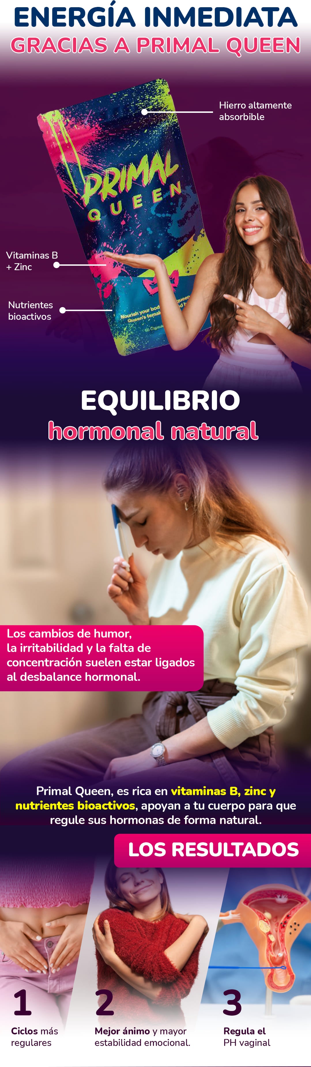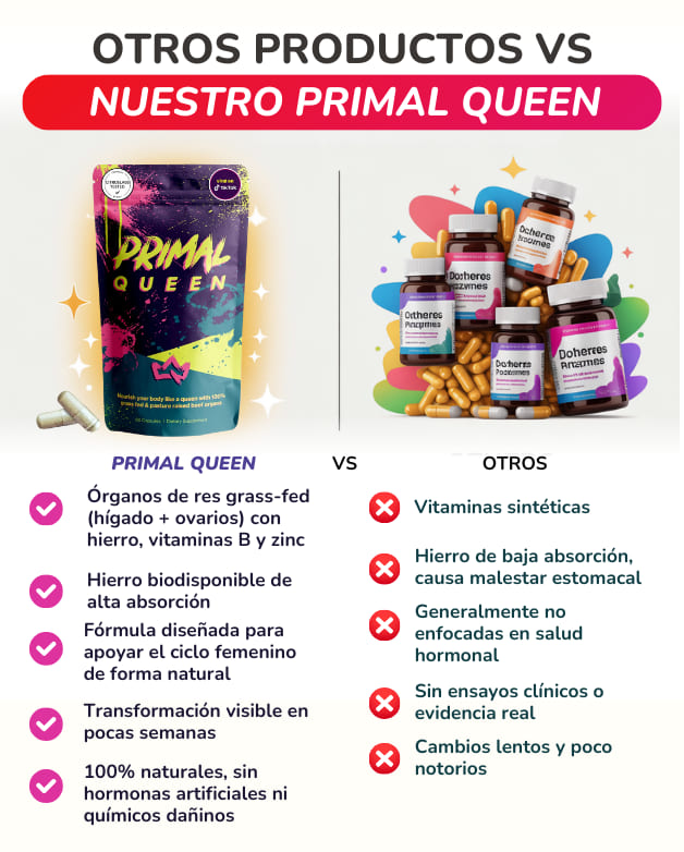 Sí ✅. Primal Queen está elaborado con ingredientes naturales y no contiene hormonas artificiales, químicos dañinos ni rellenos sintéticos. Siempre recomendamos consultar a tu médico si tienes condiciones de salud específicas.