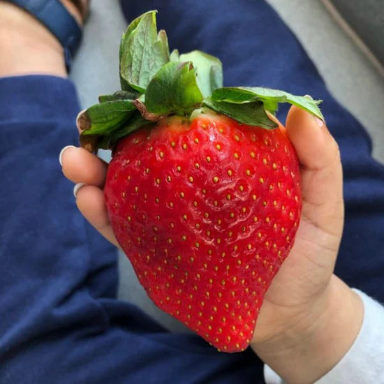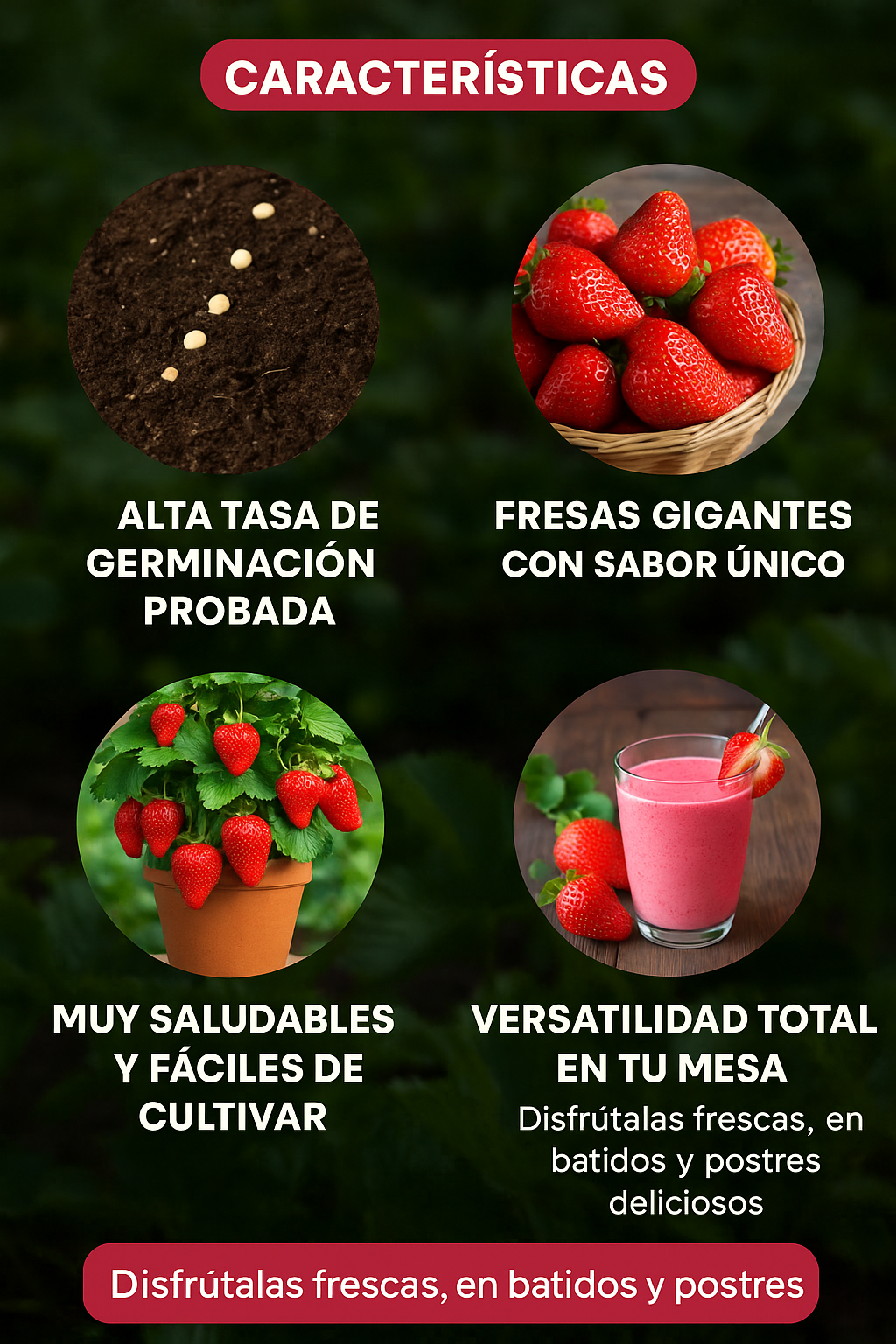 Son mucho más grandes que las fresas normales (hasta 10 cm), con un color rojo intenso, forma redondeada, más jugo y un sabor dulce y aromático que las hace irresistibles.